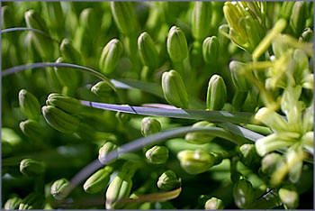 sitzen Hunderte von kleinen Blüten an dem langen Blütentrieb,